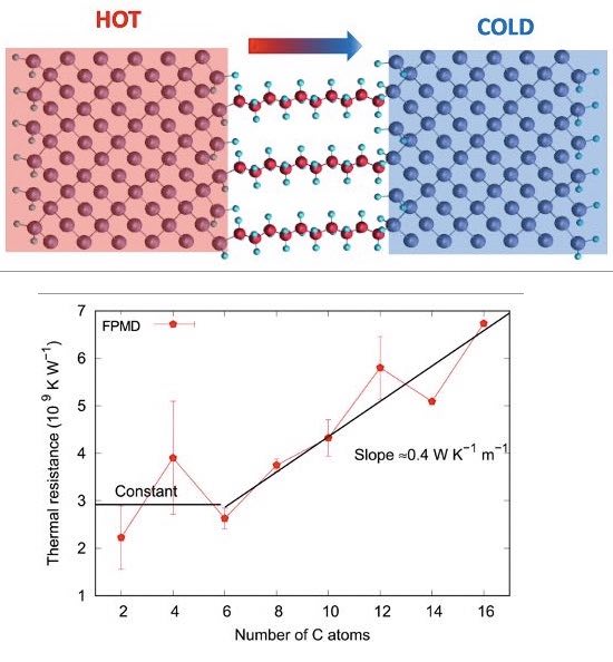 One of our achievements was to study the thermal transport through a layer of molecules :